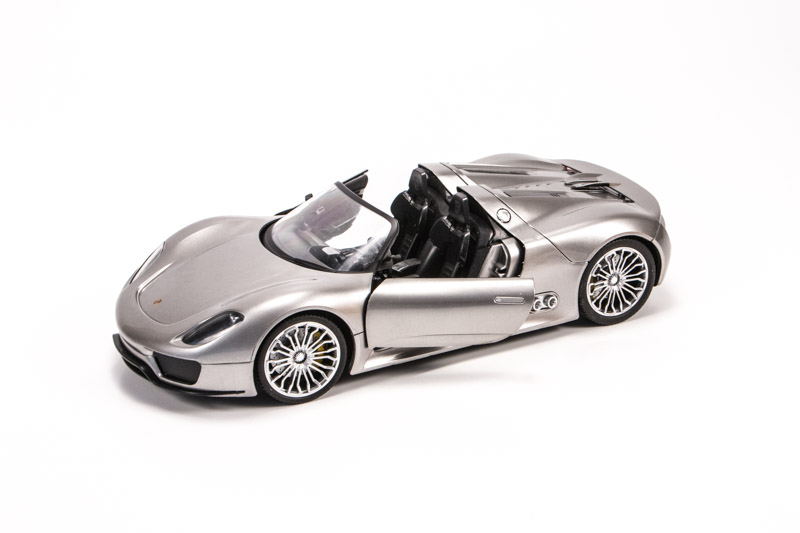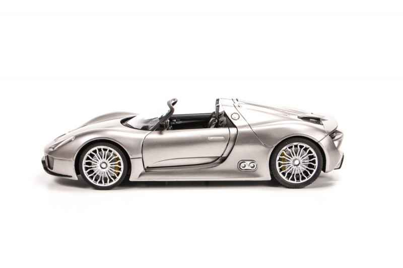 Модель автомобиля Porsche 918 Spider в масштабе 1:14. Кузов машинки точно копирует оригинальный автомобиль. Длина автомобиля 30 см, сделана из качественного прочного пластика, который легко выдерживает удары и аварии при гонках на трассе.