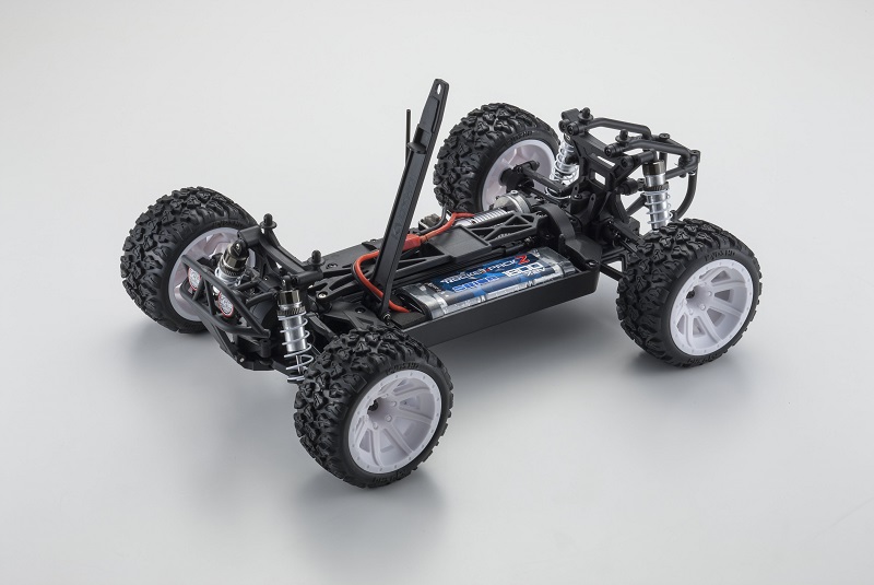 Современная аппаратура радиоуправления Syncro KT-231P FHSS 2.4GHz. Используется наиболее надёжный на сегодняшний день протокол передачи данных. Доступны функции настройки крайних точек и переключения двойных расходов. При разработке новой системы радиоуправления был учтён опыт эксплуатации предыдущей аппаратуры KT-200 и произведены значительные доработки.
