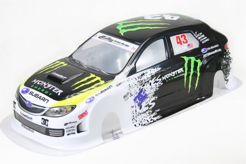 Окрашенный в черно-белый цвет кузов хэтчбек Subaru WRX STI для радиоуправляемых дрифт моделей HSP 1/10.
