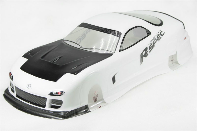 Окрашенный в белый цвет кузов Mazda RX-7 для радиоуправляемых дрифт моделей HSP 1/10.