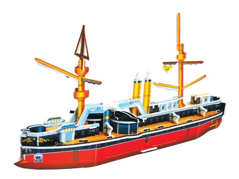 Из деталей 3Д пазла "Броненосец" можно собрать хорошо детализированную модель китайского броненосца с мачтой, артиллерийским вооружением, пушками на палубе. На его сборку потребуется совсем немного времени.