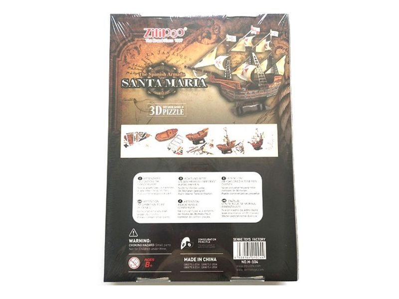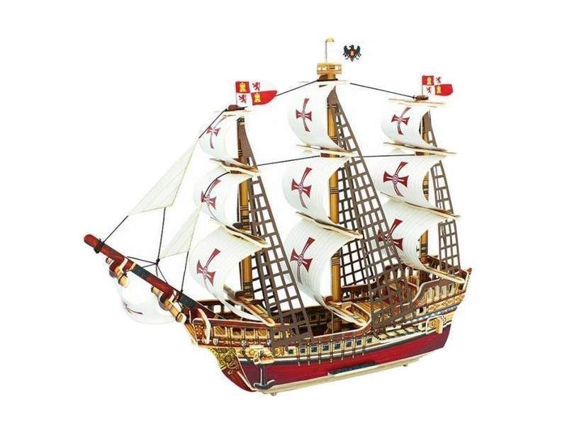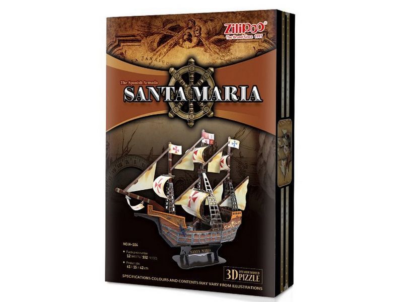 Из деталей 3Д пазла "Корабль Санта-Мария" можно собрать корабль Христофора Колумба, на котором он открыл Америку. Большая мачта корабля, яркие паруса, флаги на мачте делают корабль максимально реалистичным.