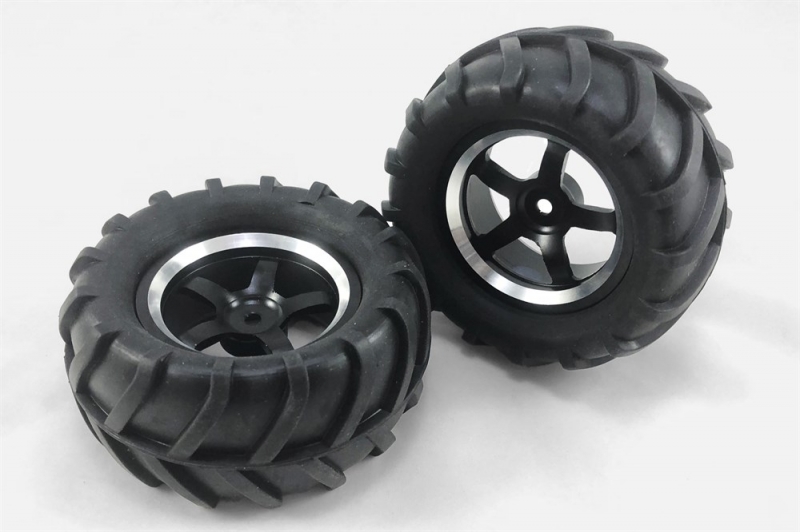 6973-AL Колеса "трактор" (2 шт) алюминиевыми дисками для моделей 1/16 (цвет черный)