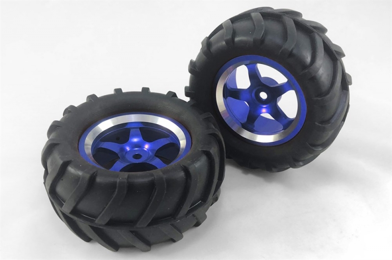 6973-AL Колеса "трактор" (2 шт) с алюминиевыми дисками для моделей 1/16 (цвет синий)
