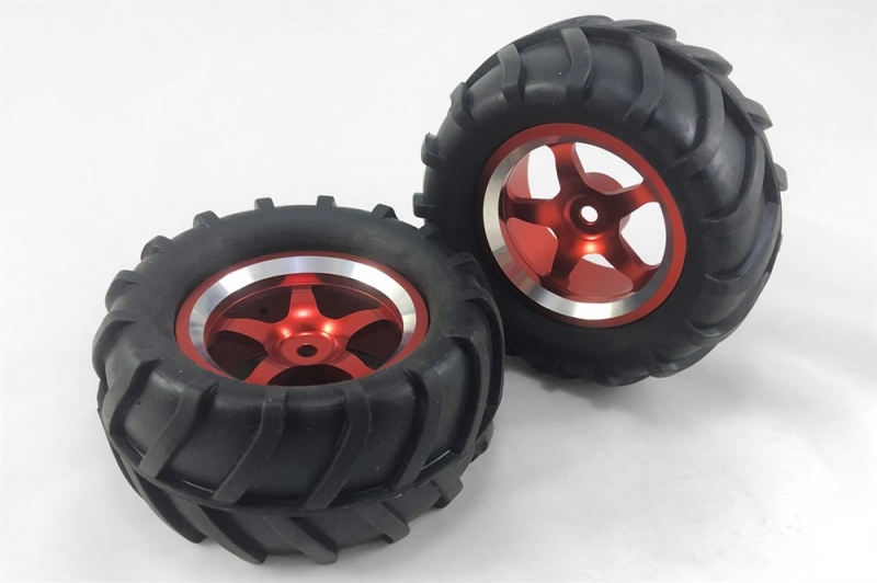 6973-AL Колеса "трактор" (2 шт) с алюминиевыми дисками для моделей 1/16 (цвет красный)