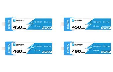 Аккумулятор BETAFPV 450 mAh BT2.0 1S 3.7V 30C HV LiPo (4шт)