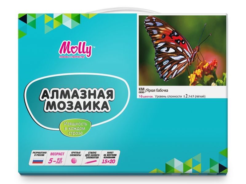 Алмазная мозаика 15х20 ЯРКАЯ БАБОЧКА (16 цветов)