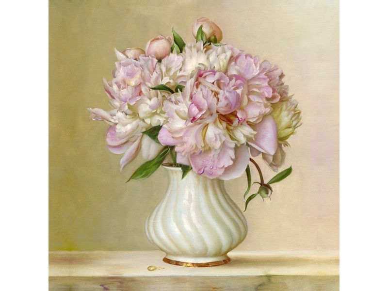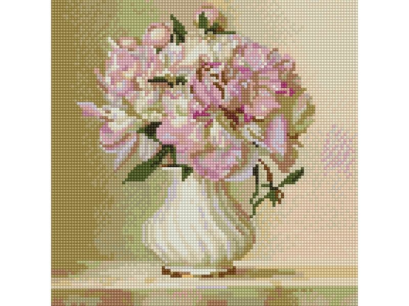 В наборе "Вдохновение" из мозаичных элементов можно выложить картину Игоря Бузина. Букет пышных, нежных пионов в вазе из декоративных элементов переливается всеми цветами радуги.