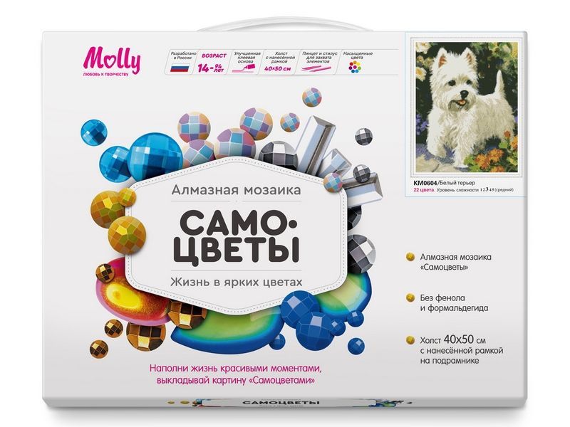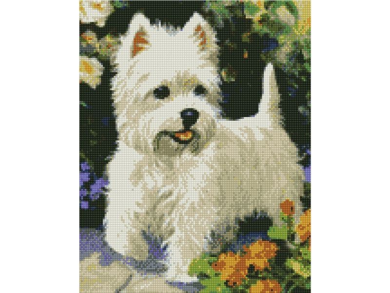 Алмазная мозаика с нанесенной рамкой 40х50 БЕЛЫЙ ТЕРЬЕР (22 цвета)