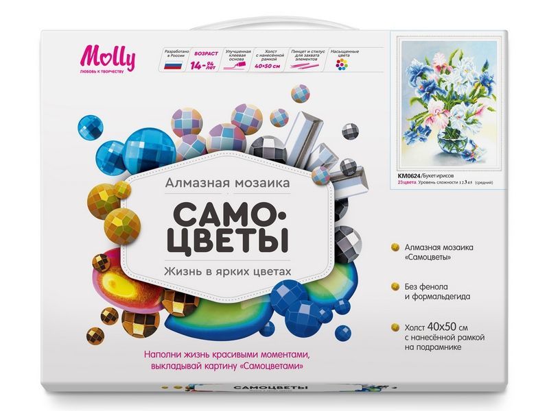 Алмазная мозаика с нанесенной рамкой 40х50 БУКЕТ ИРИСОВ (23 цвета)