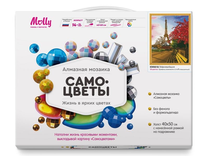 Алмазная мозаика - наборы, в которых желаемое изображение выкладывается на основе со схемой рисунка при помощи специальных декоративных элементов. Подсказка в виде нанесенного контура существенно облегчает задачу и дает возможность создавать картину даже людям, не имеющим художественных навыков. Готовая картина переливается на свету всеми цветами радуги.