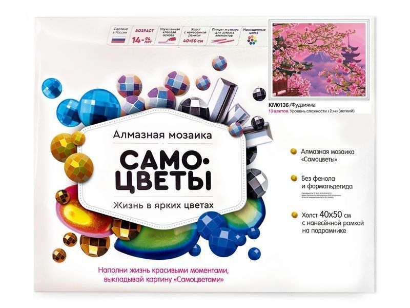 Алмазная мозаика с нанесенной рамкой 40х50 ФУДЗИЯМА (13 цветов)