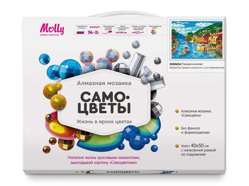 В наборе "Городок на заливе" из мозаичных элементов можно выложить картину с изображением небольшого города, расположенного на берегу залива. В тихой водной глади отражаются яркие постройки. На заднем фоне возвышаются величественные горы.