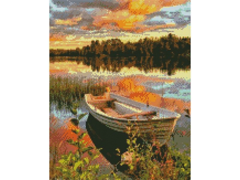 Алмазная мозаика с нанесенной рамкой 40х50 ЛОДКА НА ОЗЕРЕ (36 цветов)