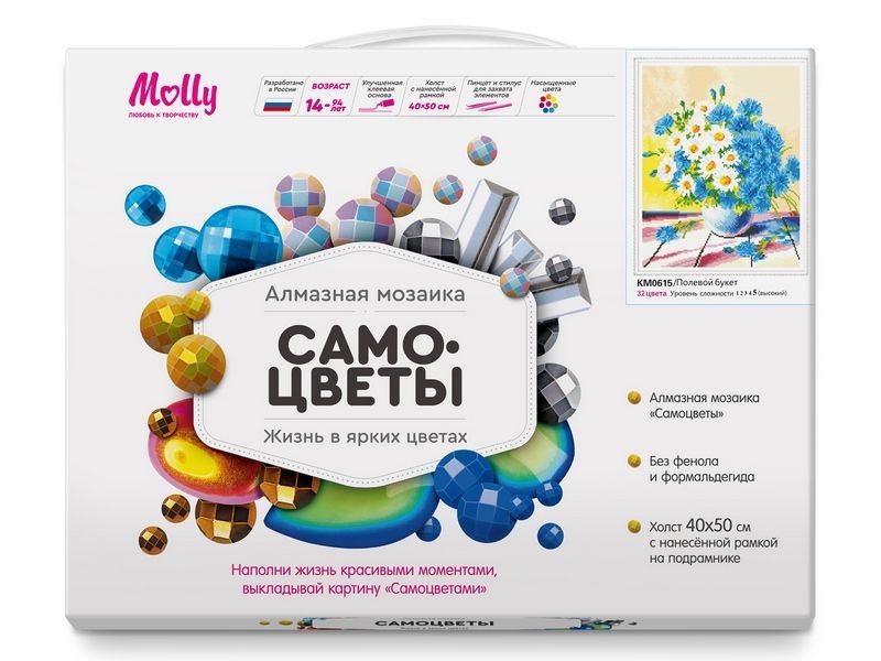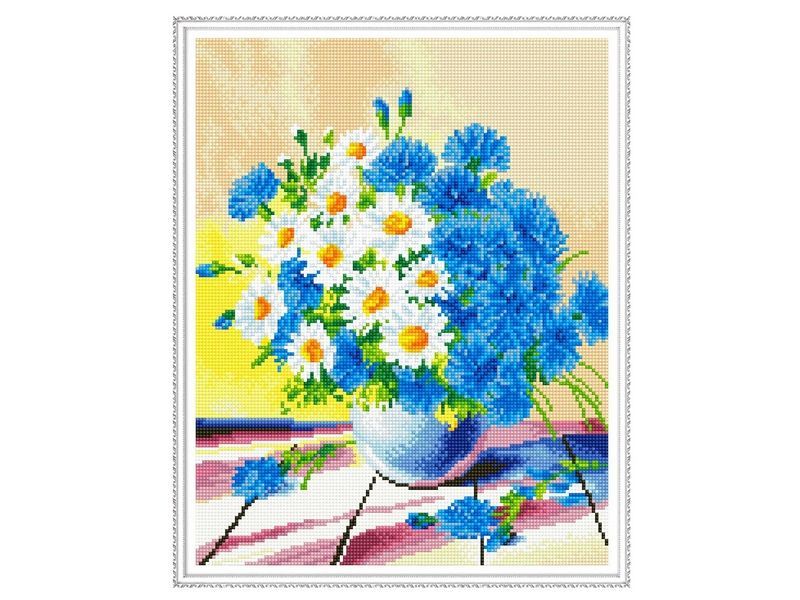 Алмазная мозаика с нанесенной рамкой 40х50 ПОЛЕВОЙ БУКЕТ (32 цвета)