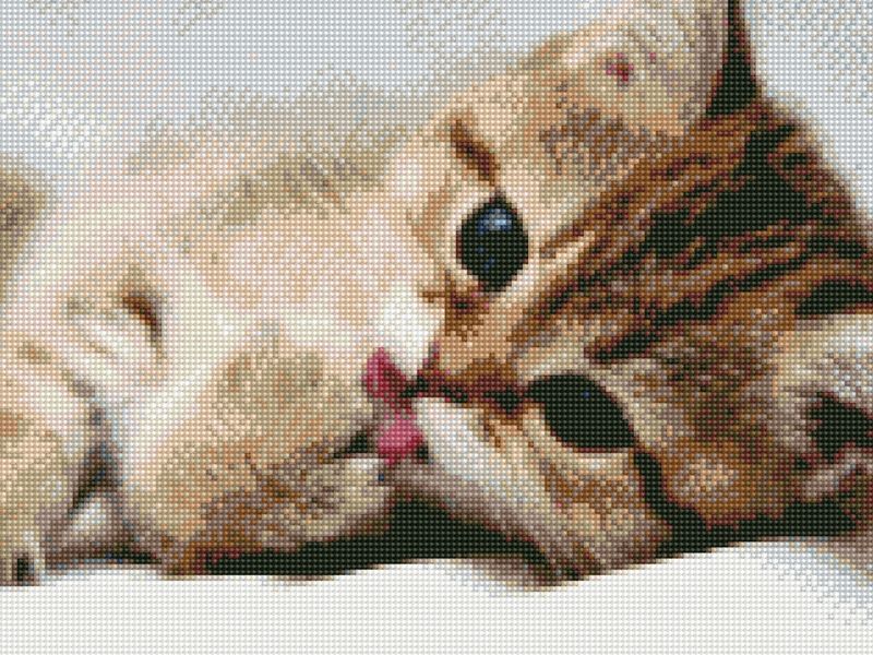 В наборе "После обеда" из мозаичных элементов можно выложить серого котенка, отдыхающего после вкусного и сытного обеда.