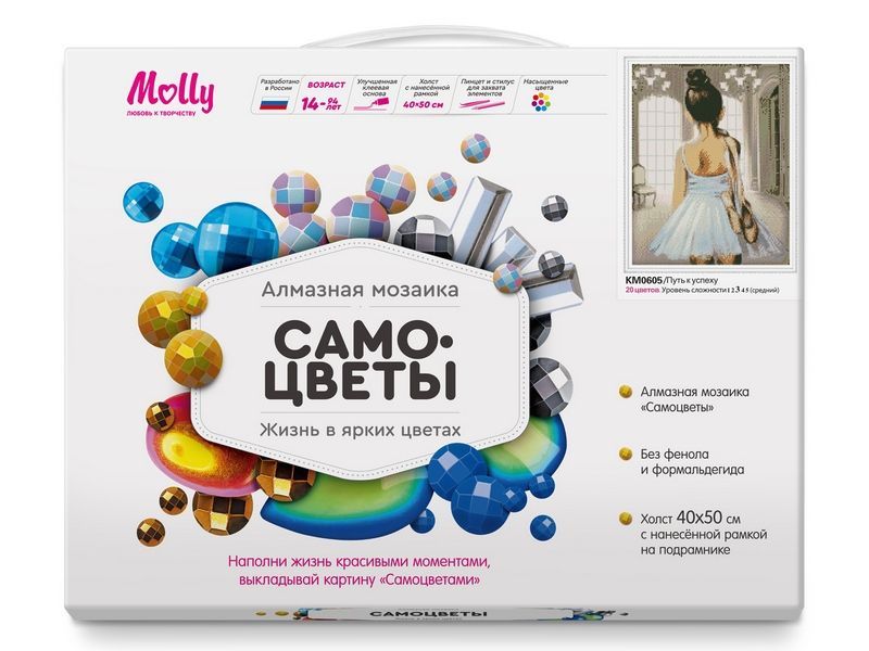 В наборе "Путь к успеху" из мозаичных элементов можно выложить маленькую балерину в пачке с пуантами. К зрителю она стоит спиной. Перед ней - не простой путь к успеху, но навстречу падениям и взлетам надо идти с высоко поднятой головой.