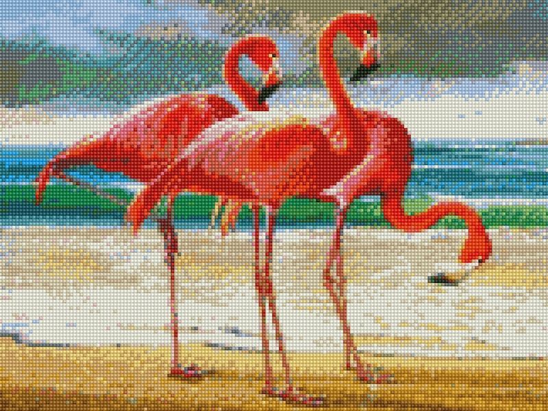 Алмазная мозаика с нанесенной рамкой 40х50 РОЗОВЫЕ ФЛАМИНГО (34 цвета)