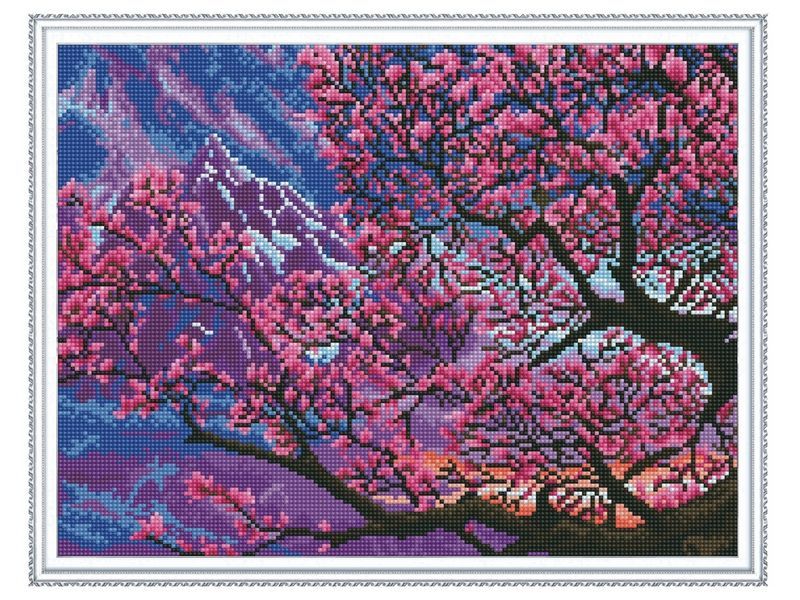 Алмазная мозаика с нанесенной рамкой 40х50 САКУРА В ЦВЕТУ (20 цветов)