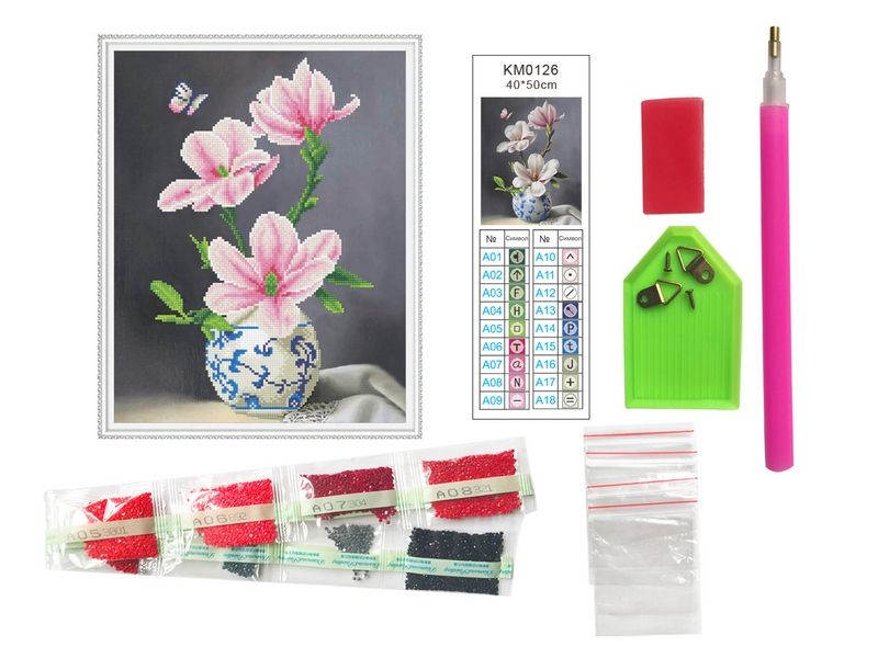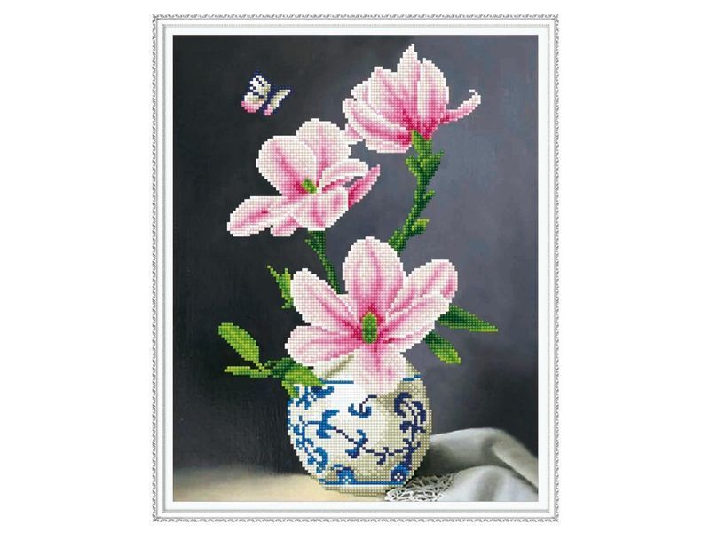 В наборе "Ветка магнолии" из мозаичных элементов можно создать ветку цветущей магнолии в красивой вазе. Бабочка прекрасно гармонирует с цветками.