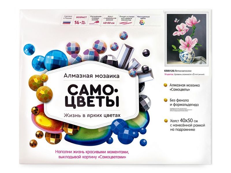 Алмазная мозаика с нанесенной рамкой 40х50 ВЕТКА МАГНОЛИИ (18 цветов)
