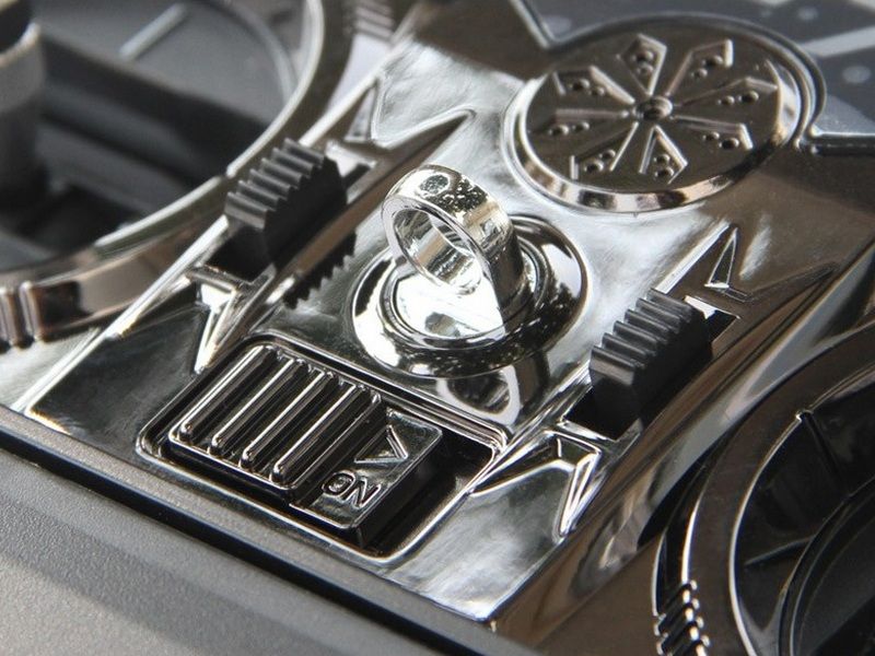 Передатчик очень удобен и отлично лежит в руках, а так же его можно вешать на шею с помощью специального ремня. Так как он оснащен технологией передачи данных на частоте 2,4 ГГц, ему нужно всего лишь 4 батарейки типа АА. Модель имеет большой 3.5" LСD экран, который прекрасно просматривается даже на солнце.