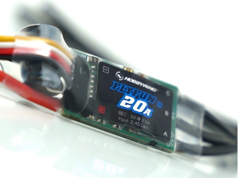 Регулятор оборотов Hobbywing FlyFun-20А V5 2-4S (Flyfun-20A-V5) для радиоуправляемых авиамоделей с бесколлекторными моторами.