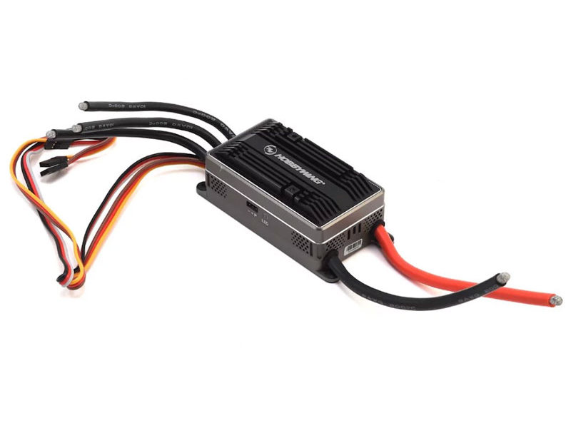 - отдельный порт программирования позволяет настраивать регулятор, просматривать полетные данные (минимальное напряжение, максимальная температура, обороты, и кривую скорости в режиме Heli Governing Store), записанные регулятором во время полета, а также обновлять прошивку регулятора при помощи многофункциональной LCD панели настройки или, с модулем WiFi, при помощи вашего Apple/Android устройства.