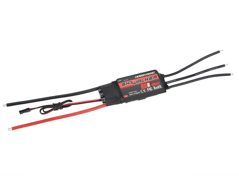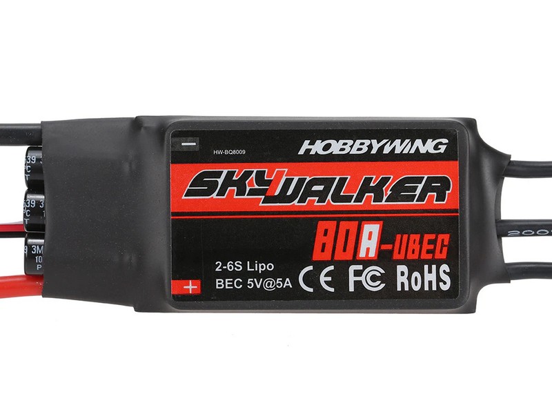 Регулятор скорости HobbyWing SkyWalker 80А-UBEC 5A/5V 2-6S LiPo (Skywalker-80A-UBEC) для авиамоделей с бесколлекторными моторами.
