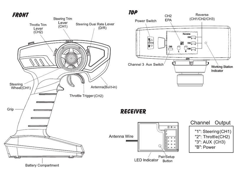 - Триммер руля (CH1) используется для регулировки прямолинейного положения передних колес.