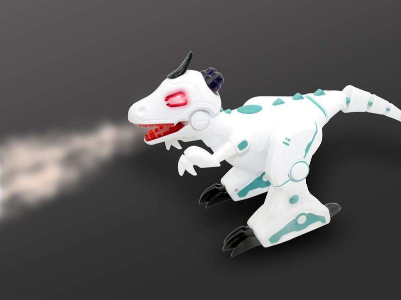 Если динозавру грозит опасность, он пугает своих врагов ревом и выпускает дым из пасти. А в целом, это безопасная игрушка, выполненная из ABS пластика.
