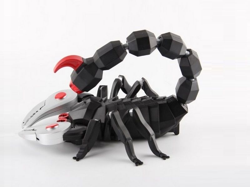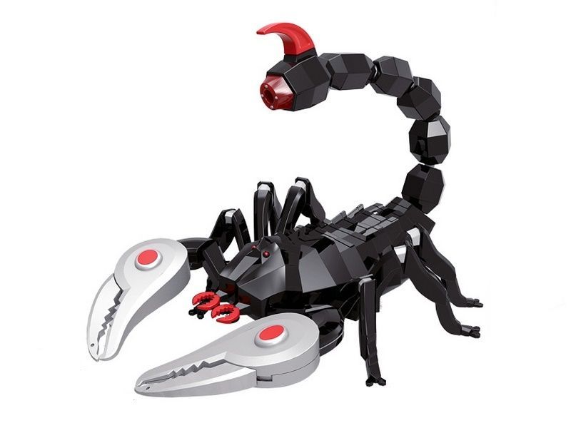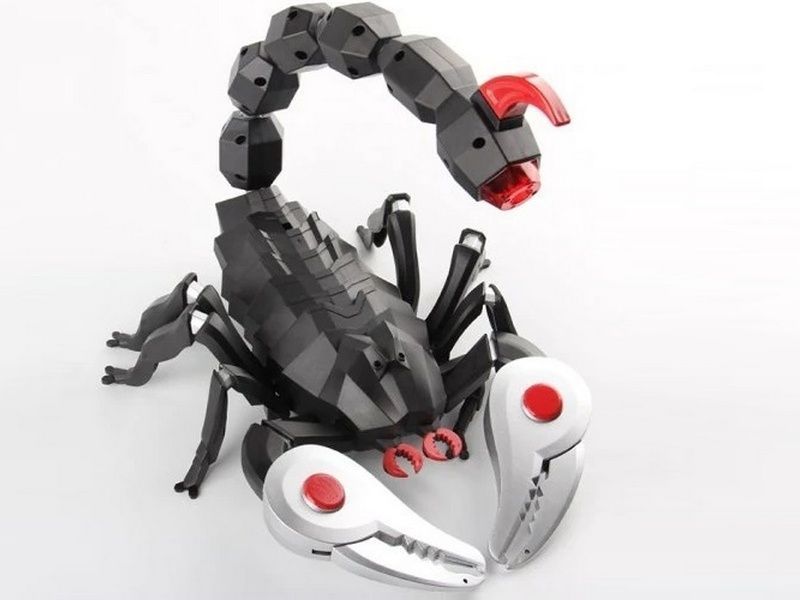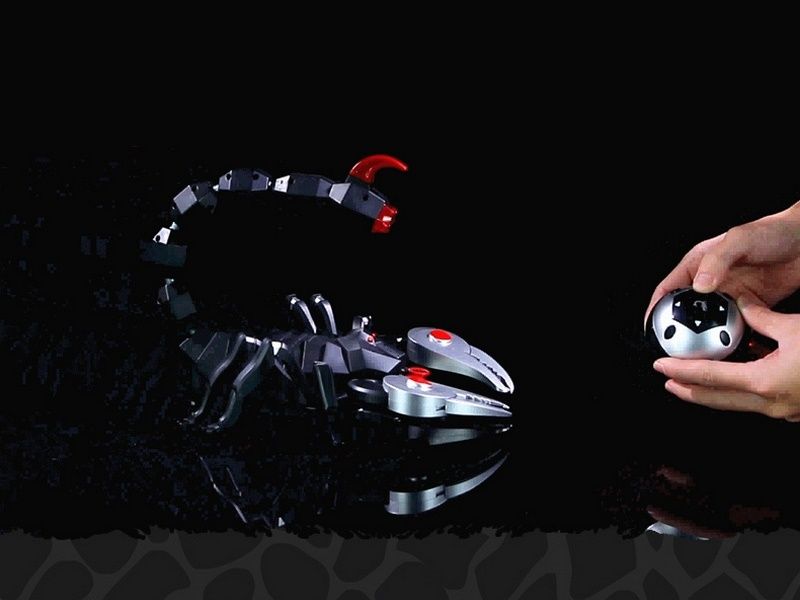 Скорпион двигается вперед, назад, совершает повороты налево, направо и даже вокруг свое оси - на 360°. С пульта управления доступна функция Авто-вперед, по которой скорпион будет двигаться вперед до отмены.