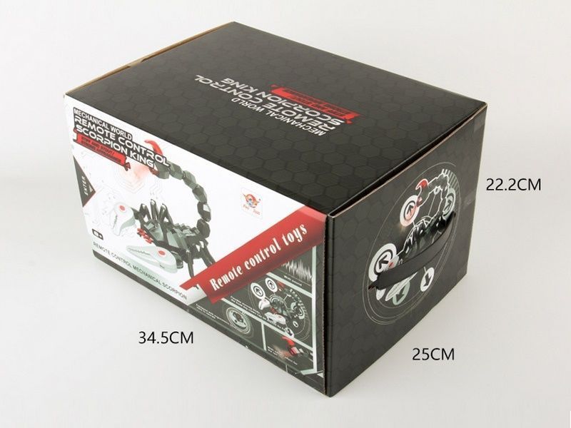 размер: 56 x 22 x 7.7 см вес: 500 г материал: ABS+PP пластик расстояние управления: 8 м время игры: около 2 часов скорпион на ИК управлении пульт управления бутылочка для воды 4 батарейки типа АА для скорпиона 4 батарейки типа ААА для пульта управления