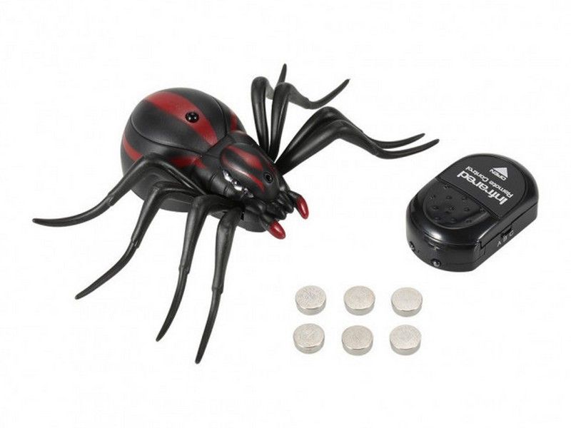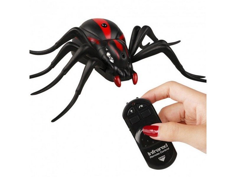 Интересная игрушка паука, выполненного в виде Черной вдовы. Паук легкий и удобный для переноски. Гибкая конструкция позволяет пауку легко и быстро перемещаться, а благодаря износостойким колесикам паук может спокойно ползти по любой гладкой поверхности. При включении выключателя на теле паука, глаза светятся синим светом.