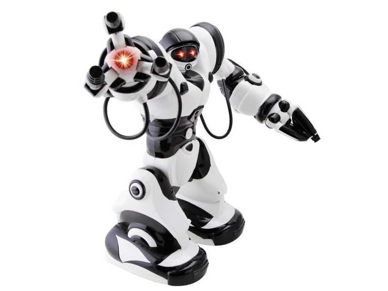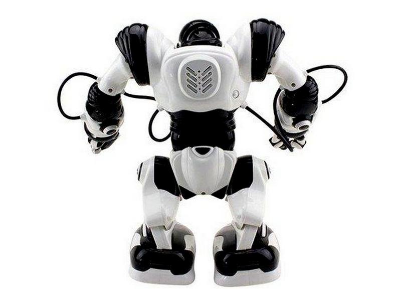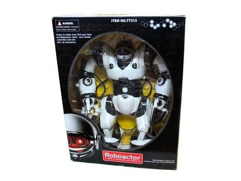 Робот JAKI Roboactor — радиоуправляемый робот с огромным набором функций. Он двигается во всех направлениях, показывает приемы карате, отлично танцует и издает разные звуки, может даже спать, брать небольшие предметы и перемещать их. С ним будет весело и интересно не только ребенку, но и взрослому! Интерактивная игрушка имеет 32 базовых алгоритма, которые легко активируются с инфракрасного пульта управления.