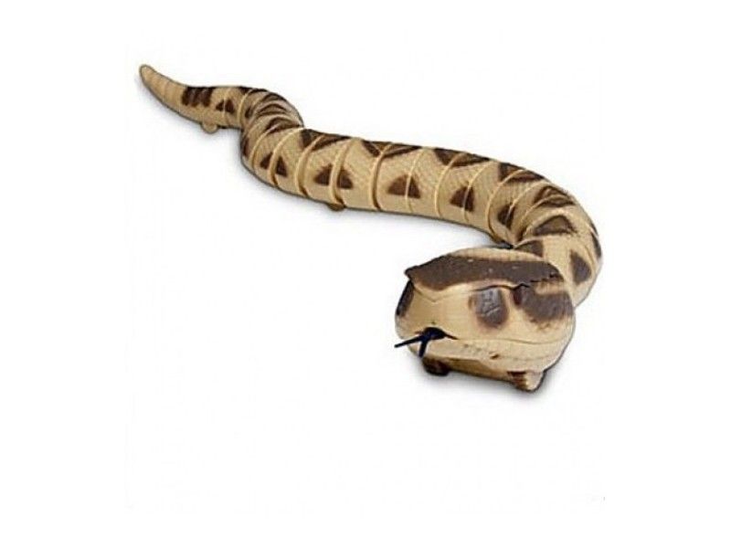 Гремучая змея представляет собой великолепно созданную обманку, по-настоящему пугающую окружающих. Эта гремучая змея выглядит совсем как настоящая. Внешний вид ее полностью соответствует ромбическому гремучнику (вид гремучей змеи). У нее даже есть дребезжащий раздвоенный язычок, который она высовывает при случае. Кроме того, игрушка издает периодически характерный треск, как настоящая гремучая змея.