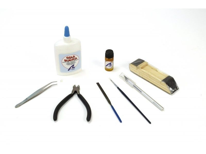 - нож моделиста Nº1 - основной инструмент моделиста, незаменимый инструмент для сборки модели, с алюминиевой ручкой и сменным лезвием;