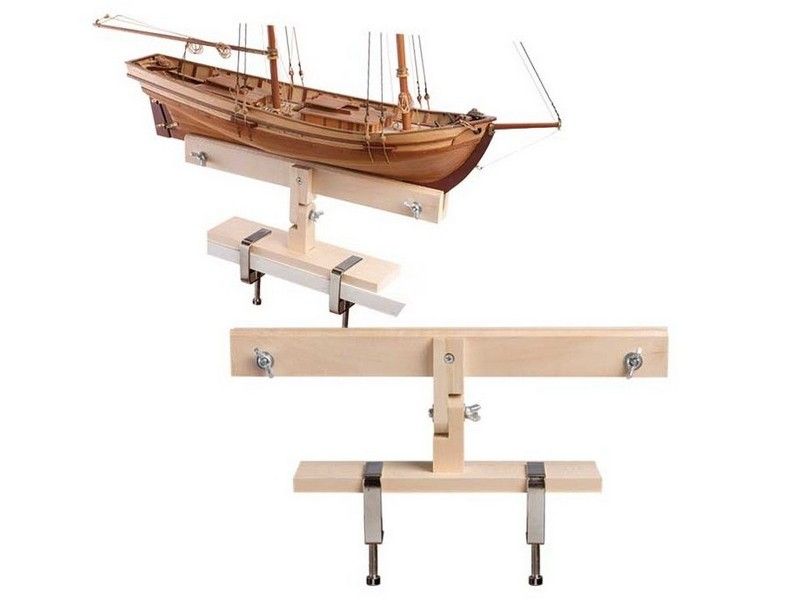 Очень удобный стапель для фиксации судомоделей во время процеса сборки. Позволяет надежно завиксировать киль модели, а также поворачивать его в процесе сборки в разных плоскостях.