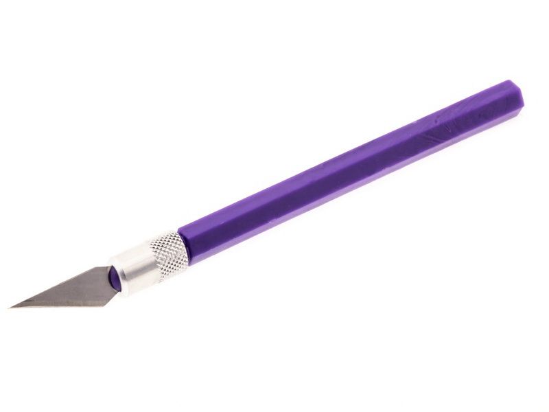 Профессиональный нож №1 для работы с мягкими породами дерева. Нож имеет цанговый зажим, что позволяет выполнить быструю замену лезвий, защитный колпачок лезвия, предохраняет от повреждения при падении. Рукоятка выполнена из пластмассы, длина рукоятки 120 мм. Подходят лезвия №10, №11, №12, №16, №17, №21.