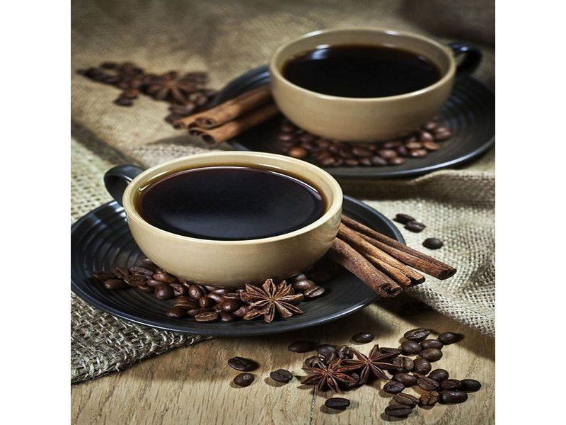 В наборе "Кофейный аромат" из мозаичных элементов на холсте можно выложить накрытый стол на двоих с двумя чашками свежеприготовленного кофе.