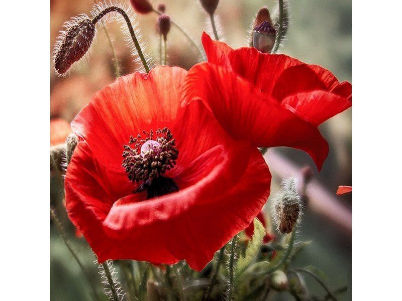 В наборе "Маки" из мозаичных элементов на холсте можно выложить картину с насыщенными красными маками.