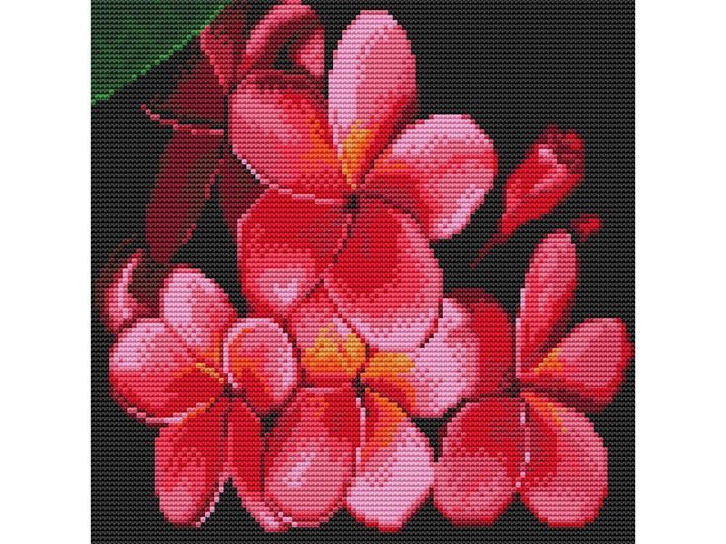 В наборе "Цветок лаоса" из мозаичных элементов на холсте можно выложить яркую картину с цветками лаоса.