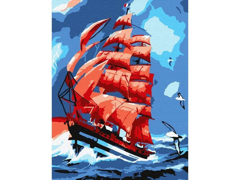 Используя кисти и краски, на холсте можно нарисовать морской пейзаж с алыми парусами. Бушует гроза, небо рассекает молния, над морем кружатся тревожные чайки. Корабль бросает на волнах. Для такого творчества не требуются специальные художественные навыки. Нужно лишь следовать инструкции и время от времени сверяться с цветовой схемой рисунка.