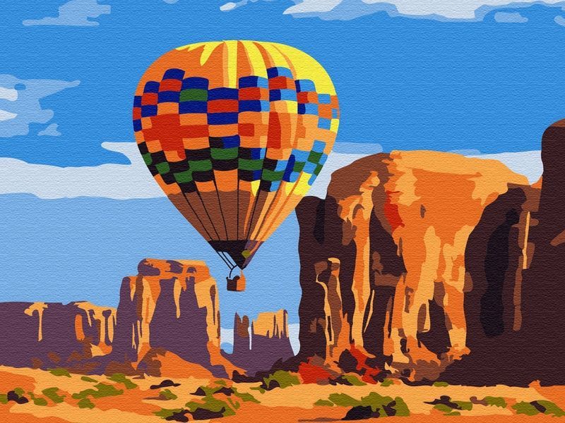 Используя кисти и краски, на холсте можно нарисовать яркий, разноцветный воздушный шар, поднимающий ввысь людей, желающих посмотреть на природные достопримечательности с высоты птичьего полета. Для такого творчества не требуются специальные художественные навыки. Нужно лишь следовать инструкции и время от времени сверяться с цветовой схемой рисунка.