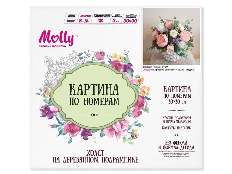 Картина по номерам 30Х30 НЕЖНЫЙ БУКЕТ (20 цветов)