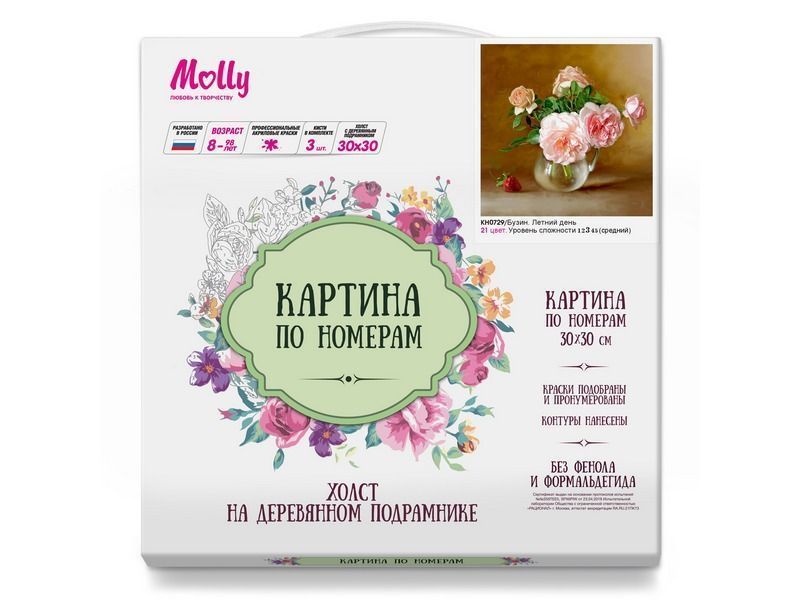 Используя кисти и краски, на холсте можно нарисовать картину Игоря Бузина "Летний день" - букет роз и пионов в вазе. Для такого творчества не требуются специальные художественные навыки. Нужно лишь следовать инструкции и время от времени сверяться с цветовой схемой рисунка.