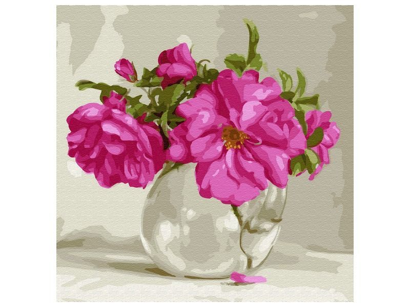 Картина по номерам 30х30 Бузин. Розовый букет (21 цвет)