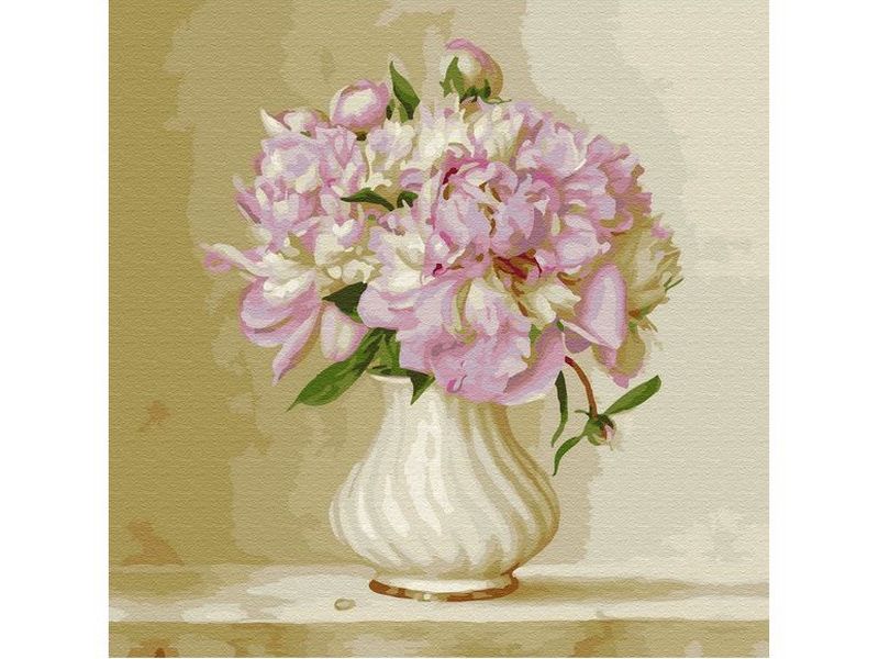 Используя кисти и краски, на холсте можно нарисовать картину Игоря Бузина "Вдохновение" - букет нежных пионов в белой вазе. Для такого творчества не требуются специальные художественные навыки. Нужно лишь следовать инструкции и время от времени сверяться с цветовой схемой рисунка.