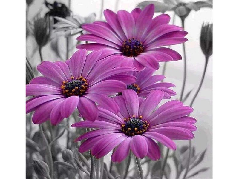 Используя кисти и краски, на холсте можно нарисовать картину "Герберы" - нежные фиолетовые герберы. Для такого творчества не требуются специальные художественные навыки. Нужно лишь следовать инструкции и время от времени сверяться с цветовой схемой рисунка.