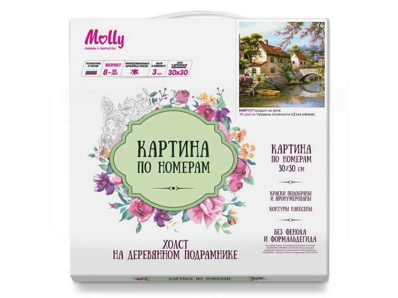 Картина по номерам 30х30 Городок на реке (19 цветов)